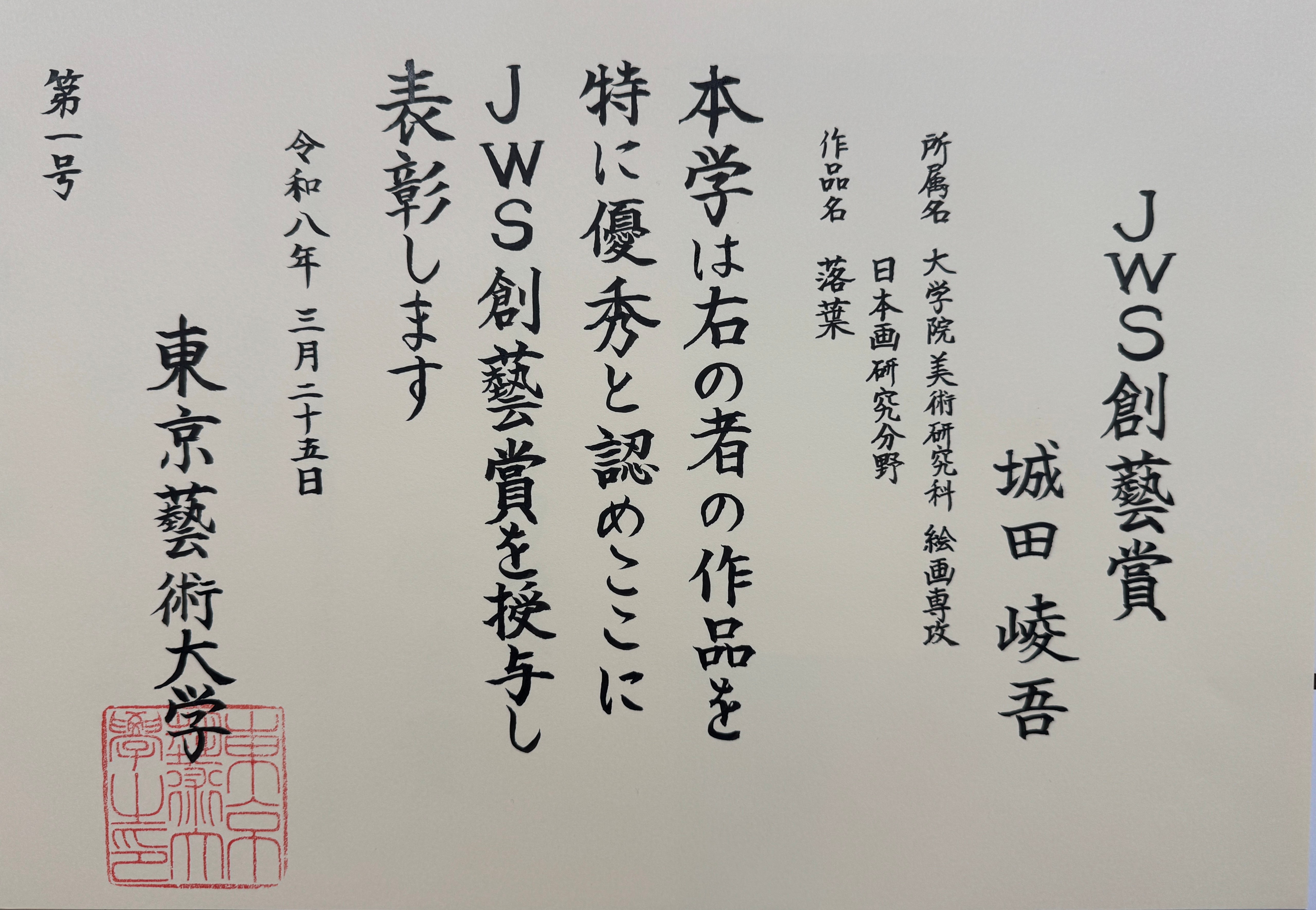 東京藝術大学奨学金制度『JWS創藝賞』設立について